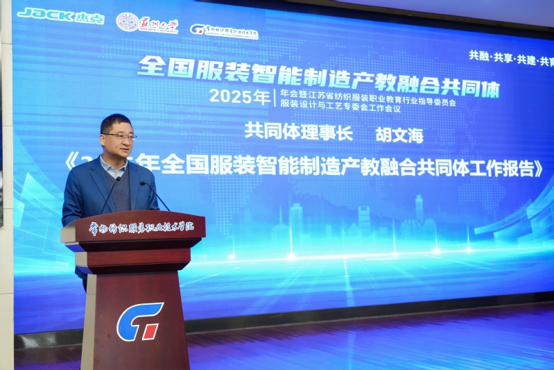2025年12月6日,全国服装智能制造产教融合共同体2025年年会暨江苏省纺织服装职业教育行业指导委员会服装设计与工艺专业委员会工作会议在我校隆重举行。本次年会以“共融、共享、共建、共育”为主题,汇聚了来自全国服装智能制造领域的行业企业代表、院校代表及科研人员,共同探讨产业转型升级背景下的人才需求、技术突破与教育创新。