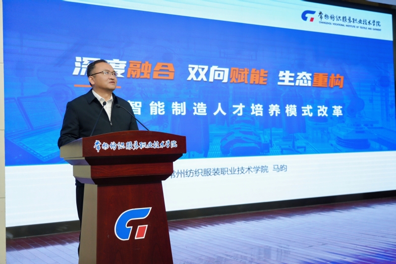 我校副院长马昀以《深度融合双向赋能生态重构:服装智能制造人才培养模式改革》为题作主旨报告,他提出院校应主动融入产业链,通过课程重构、场景再造、学岗贯通等改革路径,使院校成为新技术应用的“首站”,实现技术与人才向产业链下游的配套供给,构建共同体产教融合新生态。
